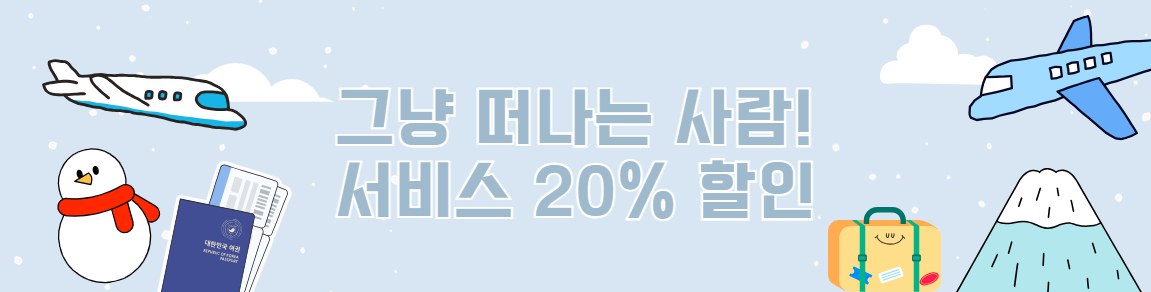 겨울 단기여행자 서비스 20% 할인 해드립니다.